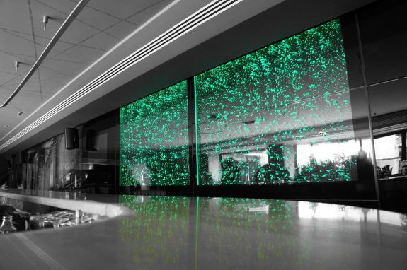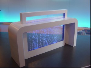 H2o Designs have incorporated a colour changing bubble wall with the Hitachi logo to create a truly unique reception desk which has succeeded in creating atmosphere and a great wow factor as you enter the building.