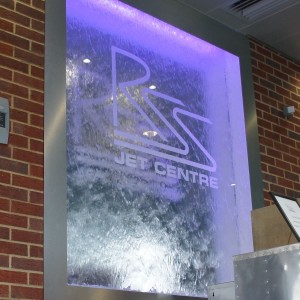 H2o Designs UK RSS jet centre reception water fall luton airport. Full colour changing water fall with etched logo and stainless steel surround. Amazing project to be involved in.