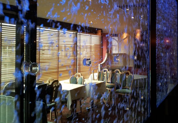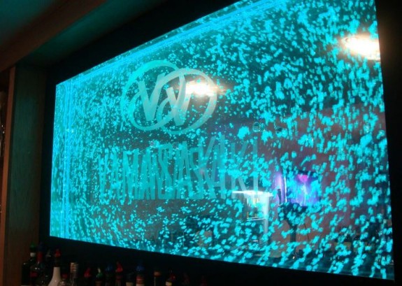 H2o designs creates a bubble wall at the Manzil Restaurant with colour changing lighting.